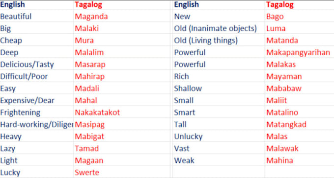 Translate English Word To Tagalog Or Vise Versa By Fgarcia09 Fiverr