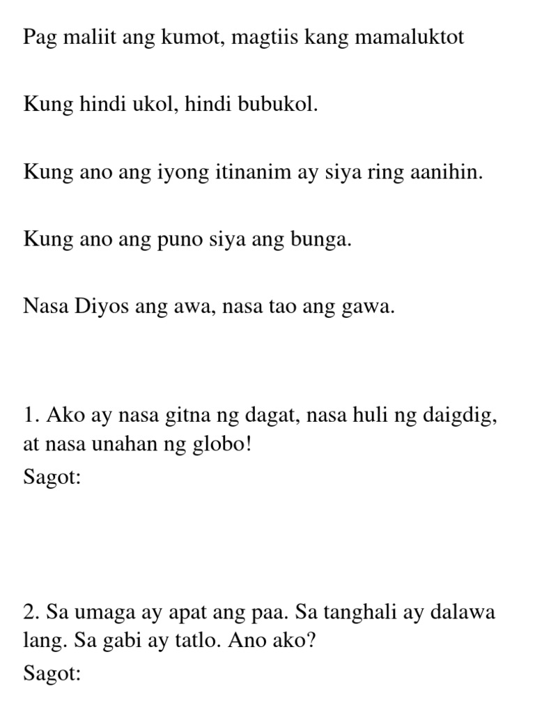 490 Mga Halimbawa Ng Bugtong Na May Sagot